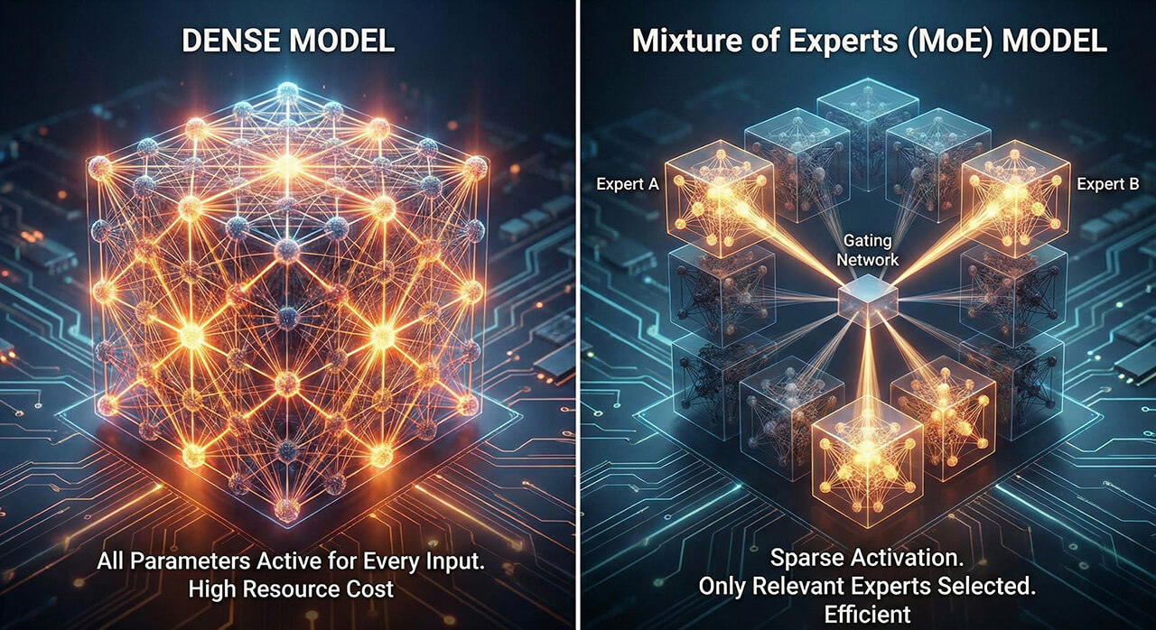 In the rapidly evolving of AI models, understanding the underlying architecture of language models is key to appreciating their capabilities and limitations. At the moment, two main approaches stand out: Dense Models and Mixture of Experts (MoE) Models. While both aim to deliver powerful AI, they take fundamentally different paths, each with its own set of advantages and catches.